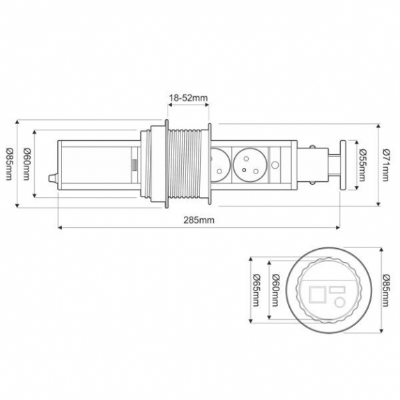 Wysuwane gniazdo meblowe LIFT BOX montowane w blatach kuchennych lub biurkach pozwala na zachowanie niemal płaskiej powierzchni blatu. W razie potrzeby wystarczy kliknąć pokrywę i wysunąć gniazdo. Dzięki chowanemu gniazdu można uniknąć gniazdek w ścianach.