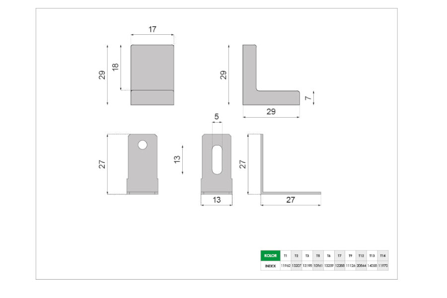 Wymiary kątownika: 27x27mm