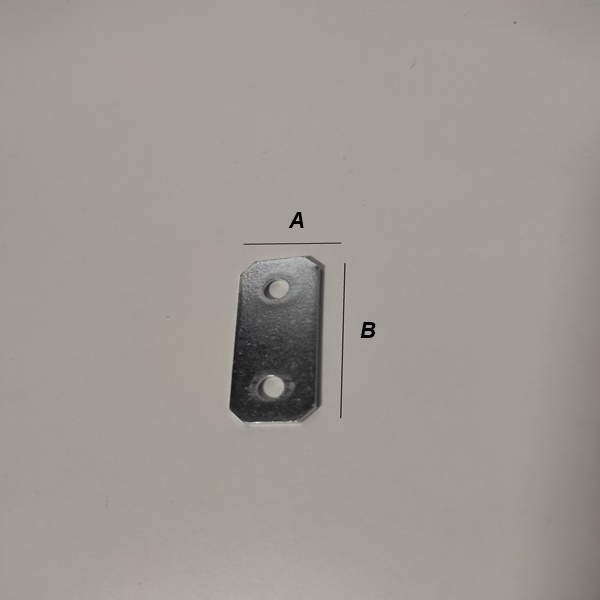Metalowy płaskownik w białym ocynku z dwiema otworami montażowymi.