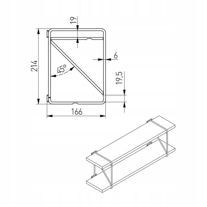 Podpórka ROD do półek w stylu LOFT czarny mat 21x17cm