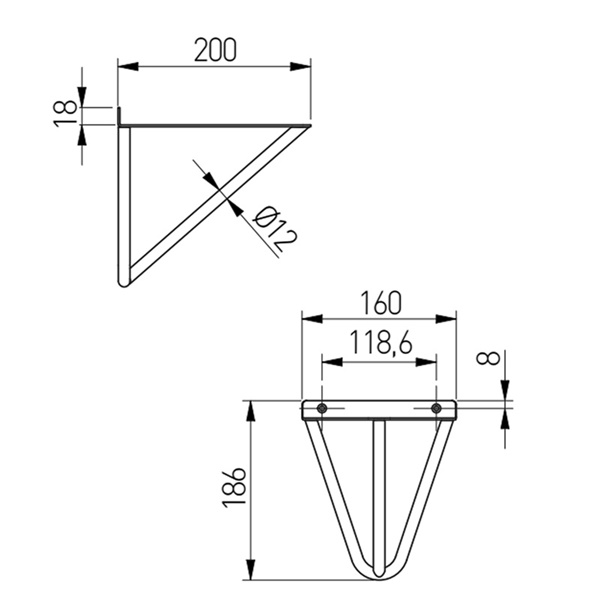 Metalowa podpórka WIRE pozwalająca na montaż półek w stylu LOFT.