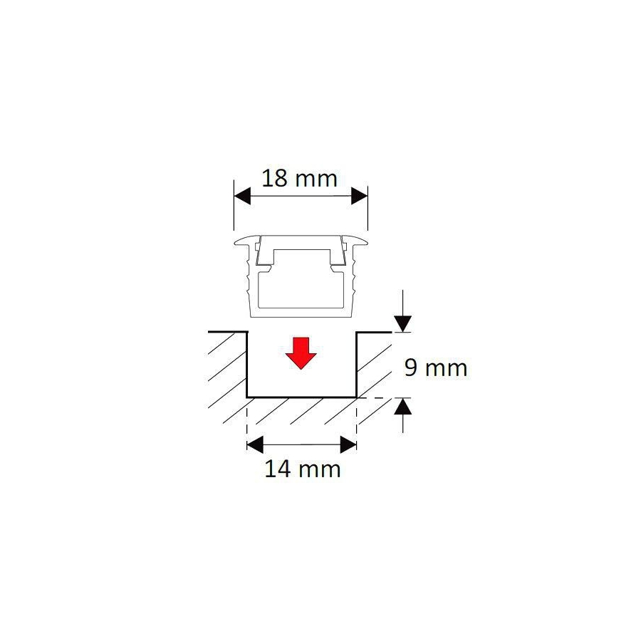 Profil wpuszczany LED montowany zazwyczaj w płytę meblową. Należy wyfrezować rowek o szerokości 14mm w który montuje się profil. Szeroki kołnierz zakrywa niedoskonałości i wyrwania podczas frezowania. Profil tylko minimalnie wystaje ponad płaszczyznę płyty w odróżnieniu od innych profili.