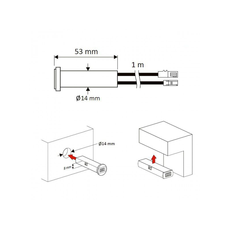 Wyłącznik bezdotykowy IR wykrywa ruch w zasięgu 10cm od czujnika i załącza/wyłącza oświetlenie. Wyłącznik ma możliwość przełączenia między bistabilnym i monostabilnym. Po zmianie konfiguracji włącznik może być stosowany w szafach, i załączać oświetlenie po otwarciu frontu.