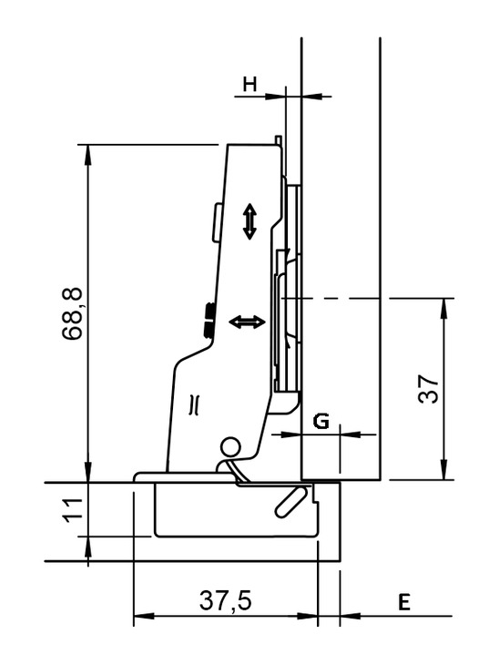 Cena dotyczy 1 sztuki zawiasu w komplecie z prowadnikiem H0 3D z regulacją mimośrodową.