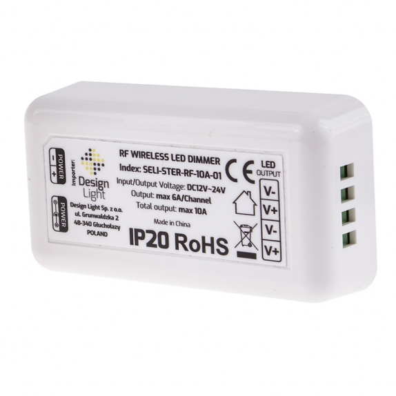 Bezprzewodowy zestaw SELI firmy DesignLight pozwalający na włączanie oraz rozjaśnianie i ściemnianie oświetlenia w postaci taśm, klipsów, i opraw LED. Pilot bardzo wygodny w użytkowaniu, działa nawet do 30m.